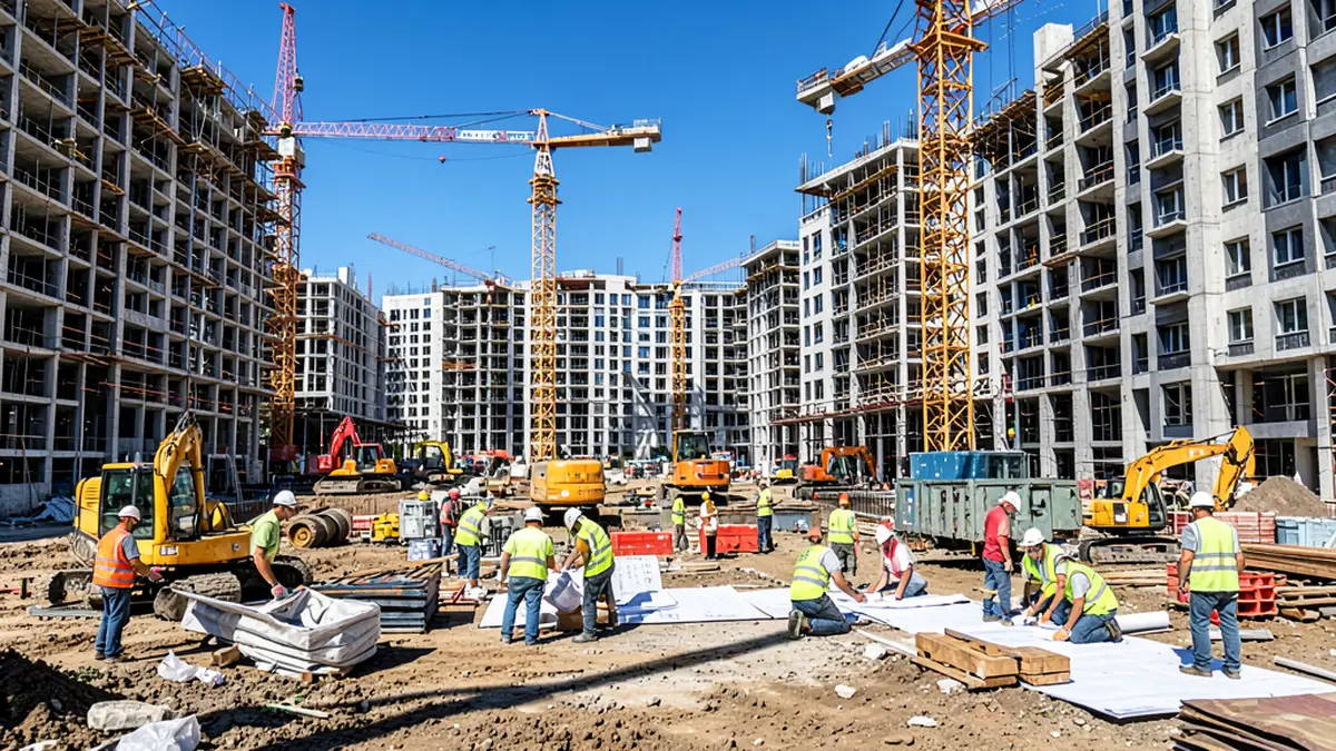 Кроме того, в седьмом корпусе завершается укладка перекрытия девятого этажа, при этом одновременно продолжаются работы по возведению наружных стен. В секциях 1 и 2 начался монтаж кронштейнов для вентилируемого фасада, что добавляет комплексности проекту.