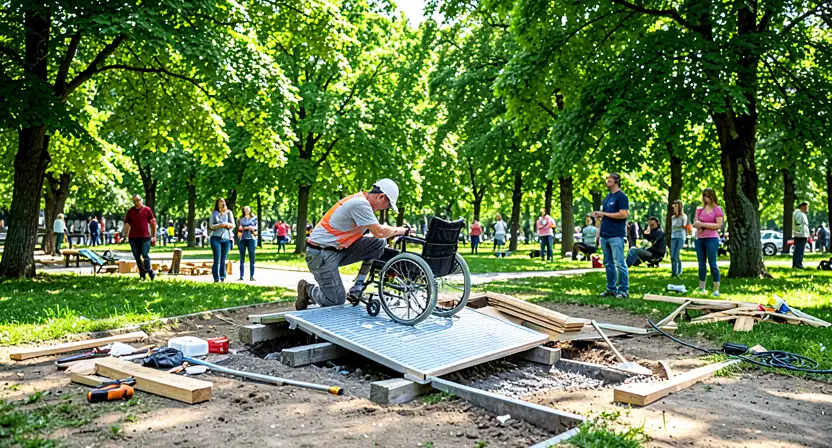 - Работы по установке пандуса начались по инициативе посетителей сквера.