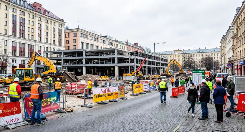 В Калининграде с 4 по 8 мая 2026 года будет ограничено движение на проспекте Калинина в связи с работами по прокладке инженерных коммуникаций для новой парковки у Южного парка.