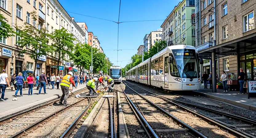 В связи с запуском эстакады предусмотрены изменения в маршрутах трамваев на левом берегу. Вечером специалисты начнут работы по переключению контактных линий, что временно изменит схему трамвайного движения. В настоящее время на эстакаде осуществляется монтаж контактных сетей, а после запуска движения старые пути на площади Труда будут демонтированы. Это позволит увеличить пропускную способность дорожной сети.